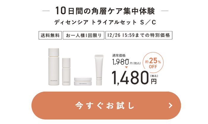 トータルでエイジングケアしたい方で、何を買うか迷っている方はまずディセンシアを選ぶと後悔はしないでしょう。トライアルセットで、ぜひ化粧水だけでなくクリームを試してみてください。